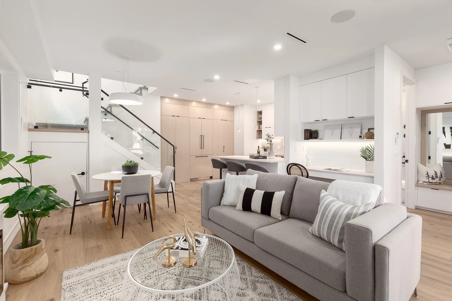 Welcome to 7th Heaven. Craftsman Modern 1/2 Duplex w/ expansive N. facing front yard. Enjoy your fresh morning coffee on this private airy front patio.This contemporary home welcomes you to 3 beds, 3.5 baths all above grade, located in one of the nicest pockets w/ whisper quiet streets in a family oriented neighbourhood & steps to vibrant Commercial Drive. Open concept layout w/ kitchen/living/dining on main w/ sliding doors that lead seamlessly from living space into yard. Luxe kitchen boasts custom cabinets, modern built-ins, quartz counters & integrated Fisher & Paykel appl. Wide plank white oak h/w flrs, HRV, A/C, radiant heat, 1 garage parking+606sf crawl space! Many custom fixtures & extensive millwork details. Proudly built by Four Corners Homes, one of East Vancouver’s most experienced duplex builders.