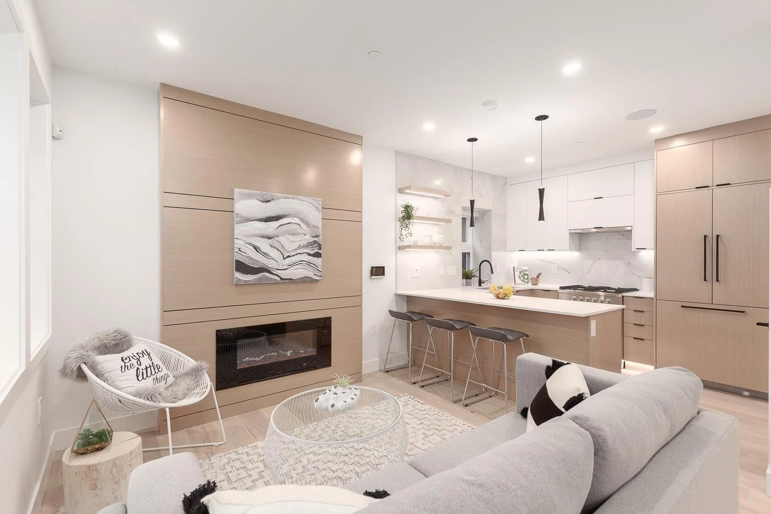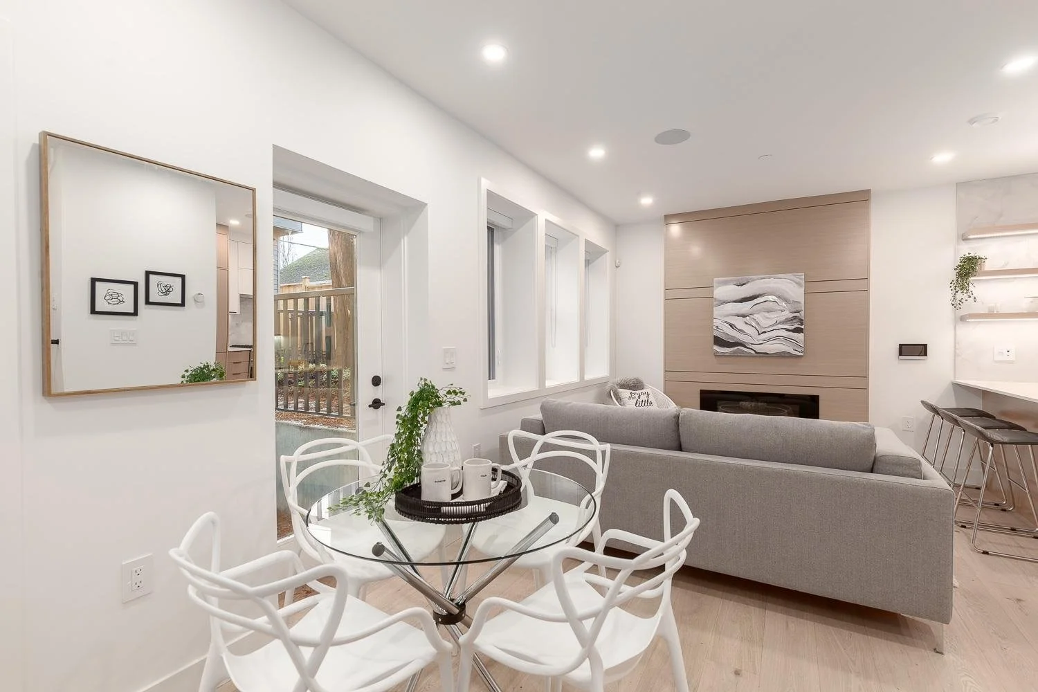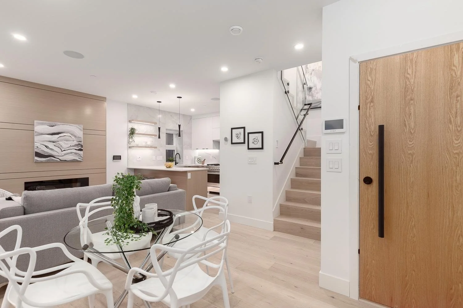 Contemporary Modern 1/2 Duplex in popular Cedar Cottage’s family friendly neighbourhood. Presented to you by reputable developer Four Corners Homes. This new home has custom w/ custom built-ins, high quality millwork, & storage thru. Cozy up by the fireplace as you enter the main floor w/ open concept living, dining & kitchen & convenient powder room. You’ll love the sleek, modern kitchen w/ integrated Fisher & Paykel appliances, gas cooktop, large kitchen island, custom white cabinets & mosaic tilework. Upper floor invites you to 2 bright, spacious beds, incl. large S-facing windows for ample natural light, spa-like bath, & washer/dryer. Top floor feat large bedroom, 4-pc bath, large storage spaces & built-ins; a perfect space for a bonus guest bed, home office, and/or playroom. Live in comfort w/ wide plank white oak h/w floors, radiant heat, HRV, security/alarm, gas BBQ bib, & built-in speakers. Spacious outdoor deck from Master. Walk to the park across the street. An outstanding design you don’t want to miss.