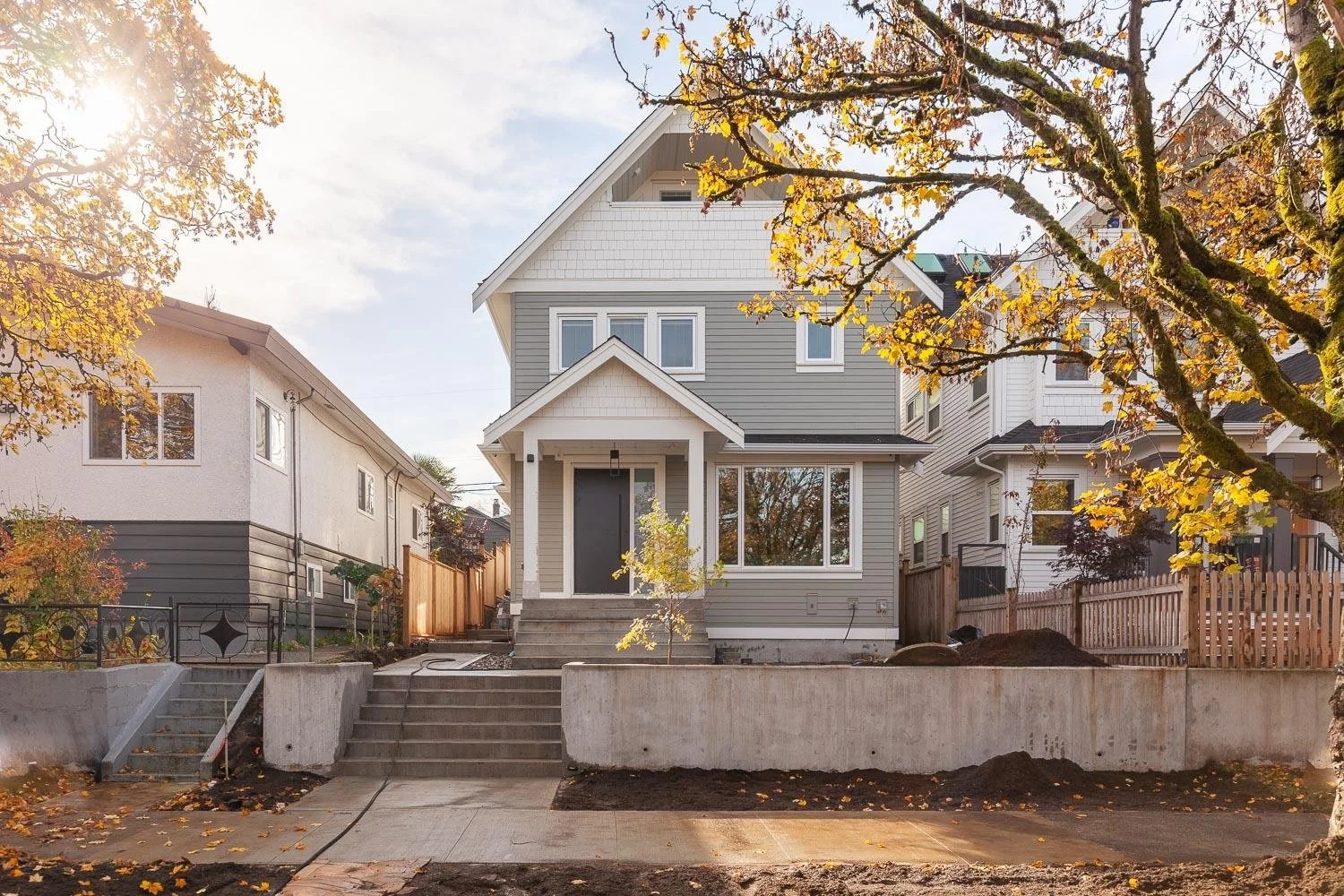 WELCOME TO 7TH HEAVEN… Proudly offered by Four Corners homes, one of East Vancouver’s most experienced duplex builders.This Craftsman Modern Back 1/2 Duplex features sun-soaked south facing backyard for entertaining and relaxing. This contemporary 3 bed + 4 baths all above grade square footage. in the nicest pockets in the area, whisper quiet streets with a welcoming family oriented neighborhood & just 3 blocks from vibrant and local Commercial Drive & nearby McSpadden Park. Open concept layout w/ kitchen, living, & dining area on main level with 19 foot accordion doors that lead seamlessly from the living space into the yard. Many custom fixtures & extensive millwork details. The Luxe kitchen feat. quartz counters, custom cabinets, & integrated appl. Wide plank white oak h/w flooring + HRV + A/C + radiant heat throughout. 1 car private garage and crawl space of 672.50 sq ft for plenty of storage.