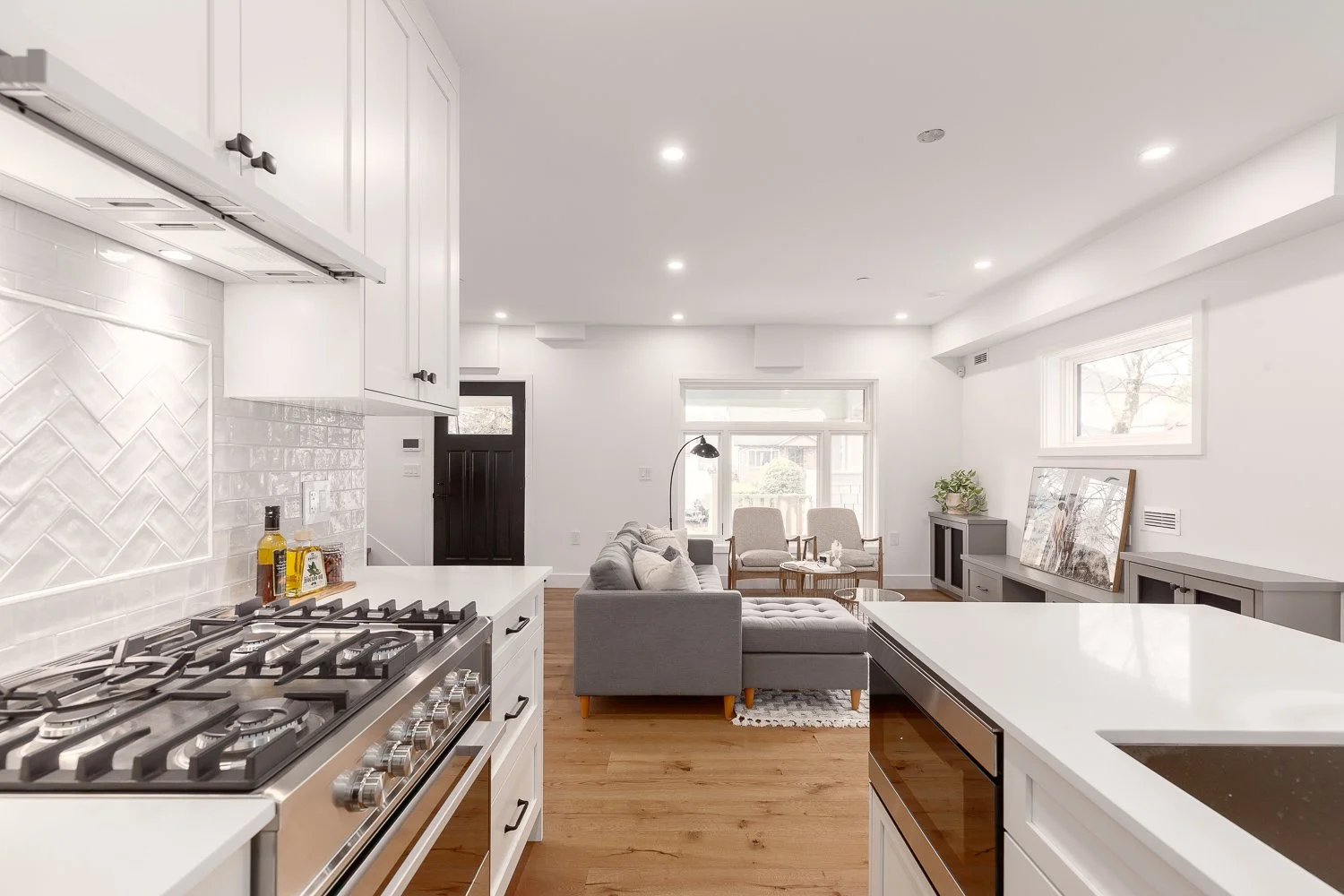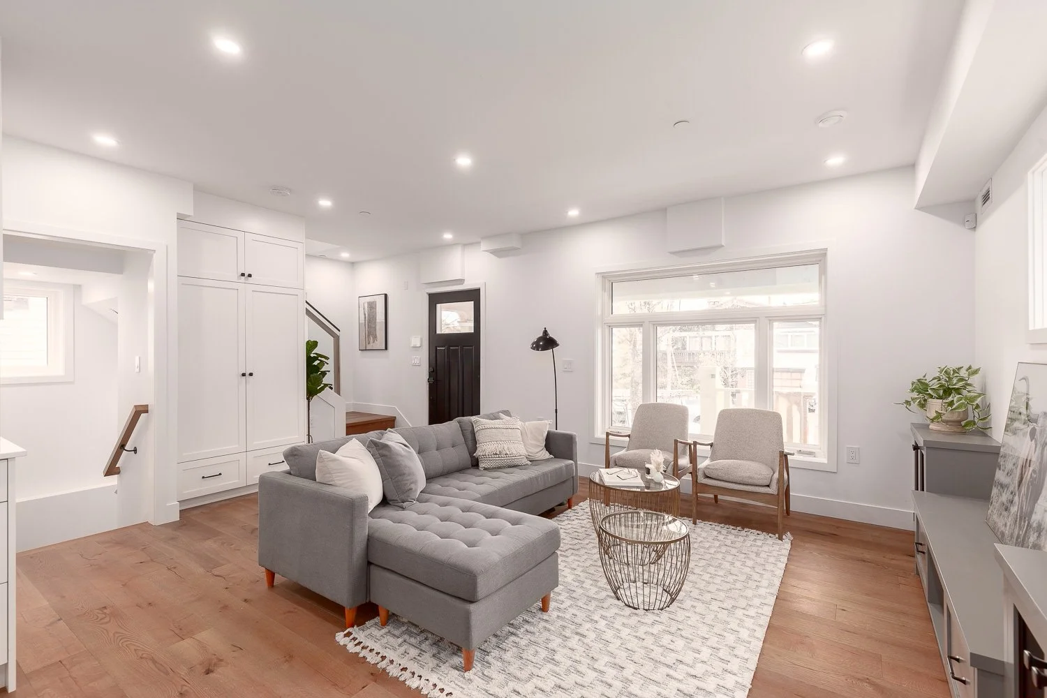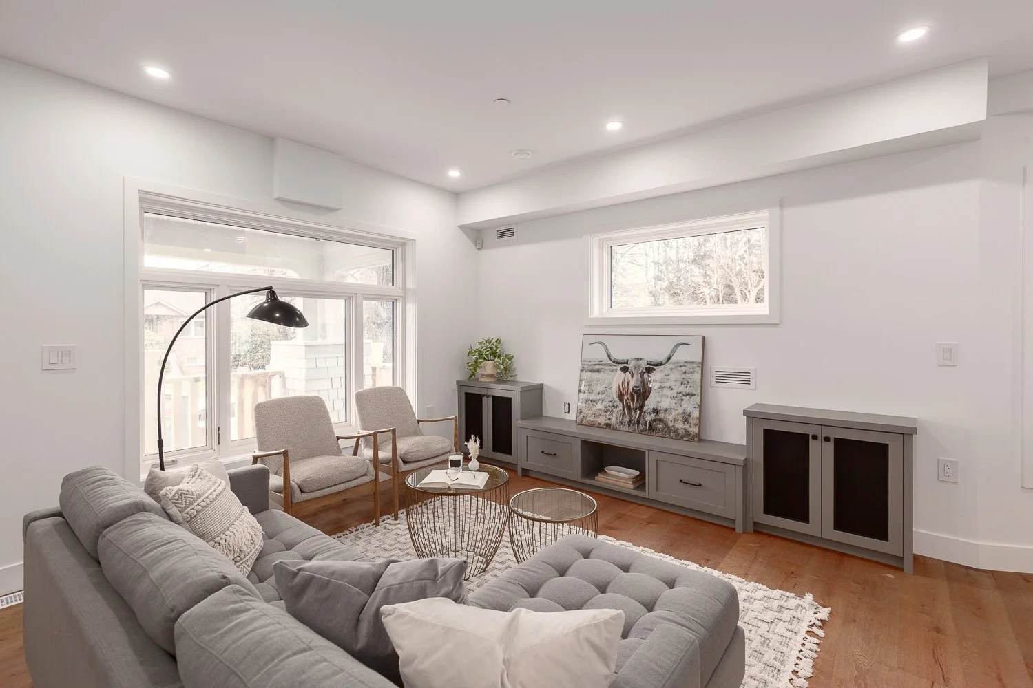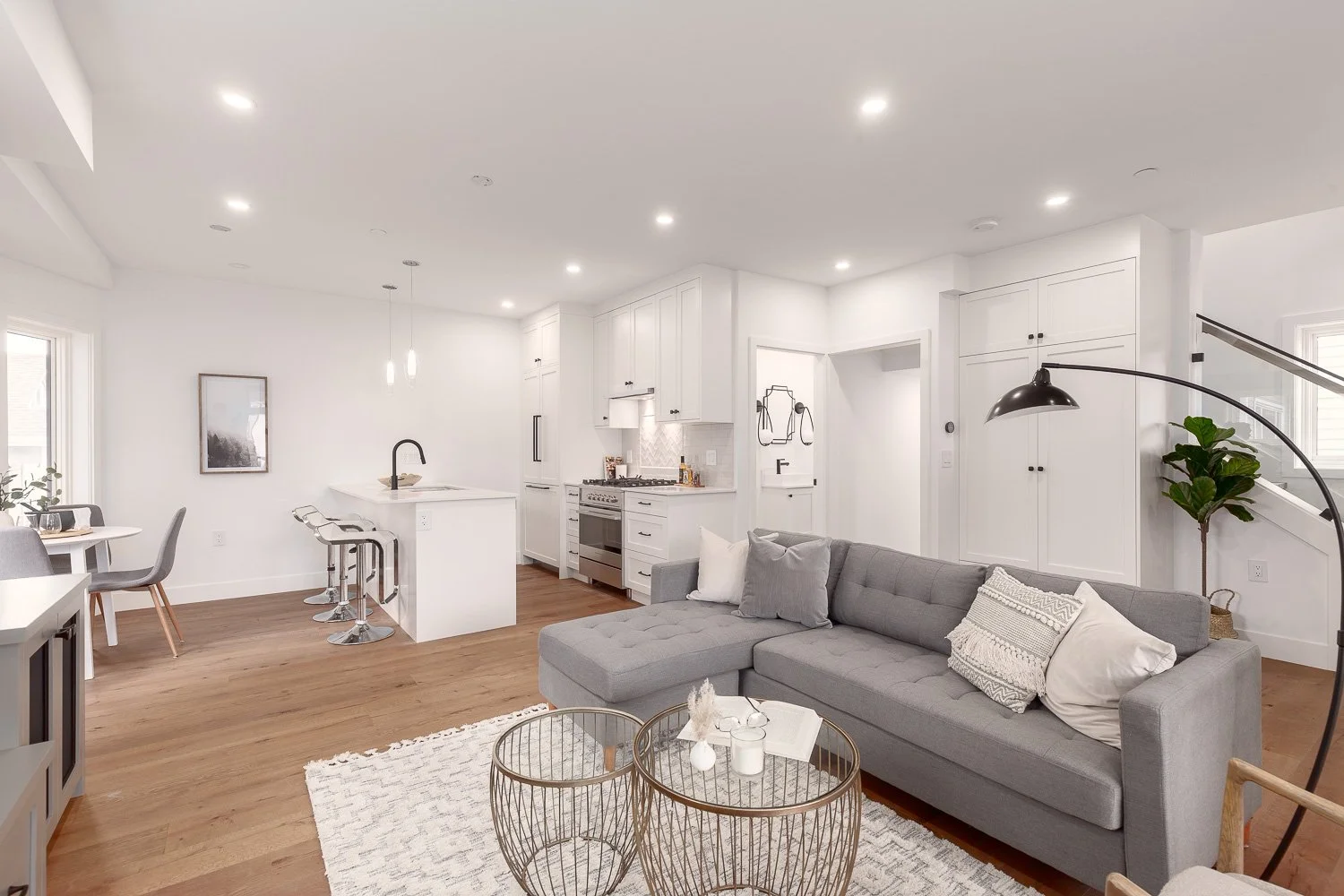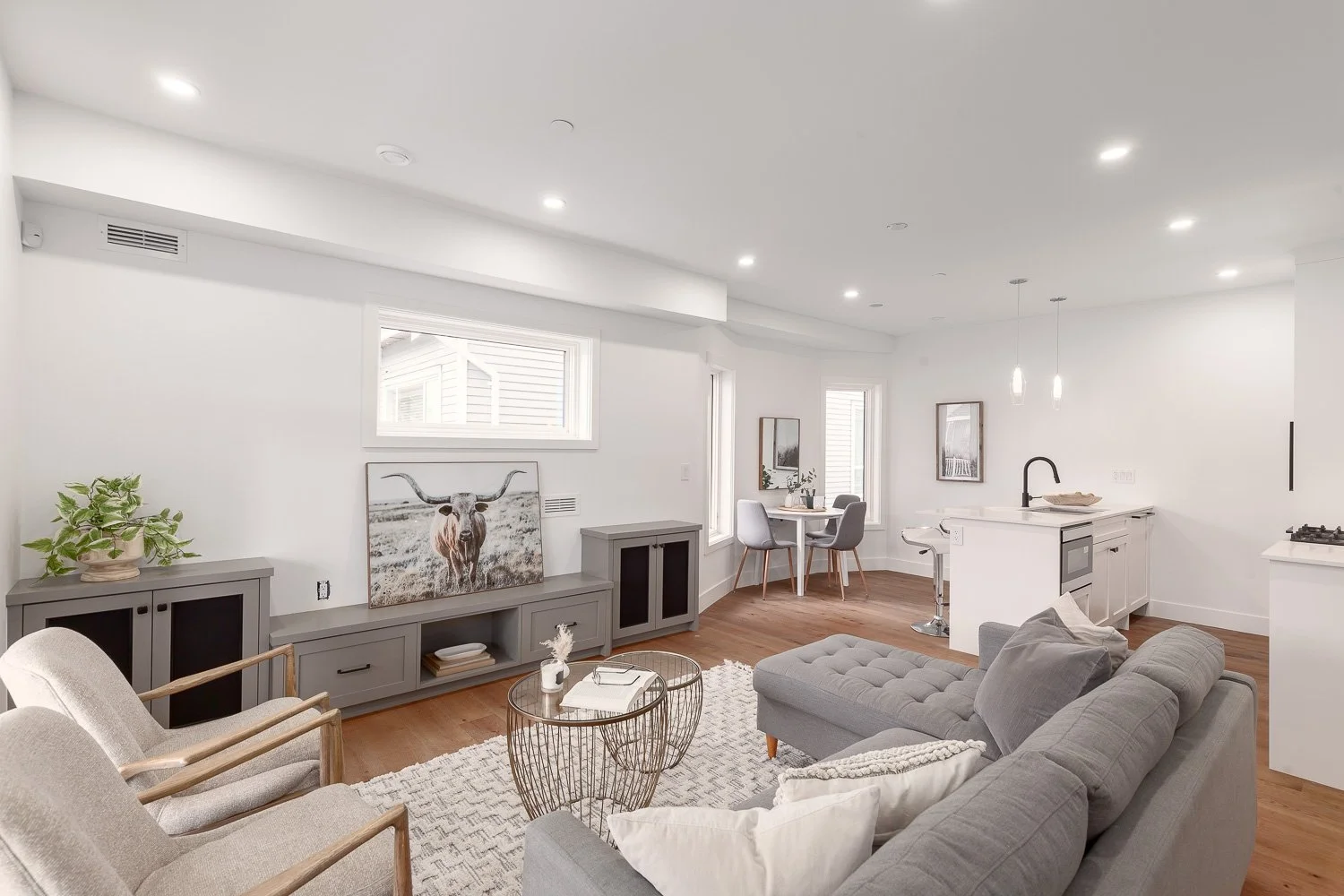 Gorgeous Craftsman Modern Front 1/2 duplex located at Wales Living. You will love relaxing & enjoying your fresh morning coffee on this charming airy front porch. Intentionally crafted space welcomes you into this 3 beds+2.5 baths home w/ open concept layout ft. formal dining/living area w/ well-placed windows offer tons of natural light. Kitchen has large island, seamless millwork, integrated Fisher & Paykel appliances & extensive modern built-ins. Wide-plank oak floors throughout & custom glass railings on stairs. Retreat to 2 beds above w/ spa-like 3pc bath, smart closet built-ins & convenient W/D. Below is flexible space w/ private 1 bed, full bath, W/D & spacious media rm- ideal for home office/playroom/family rm/ or guest bed. Proudly built by Four Corners/Modern Style Homes.