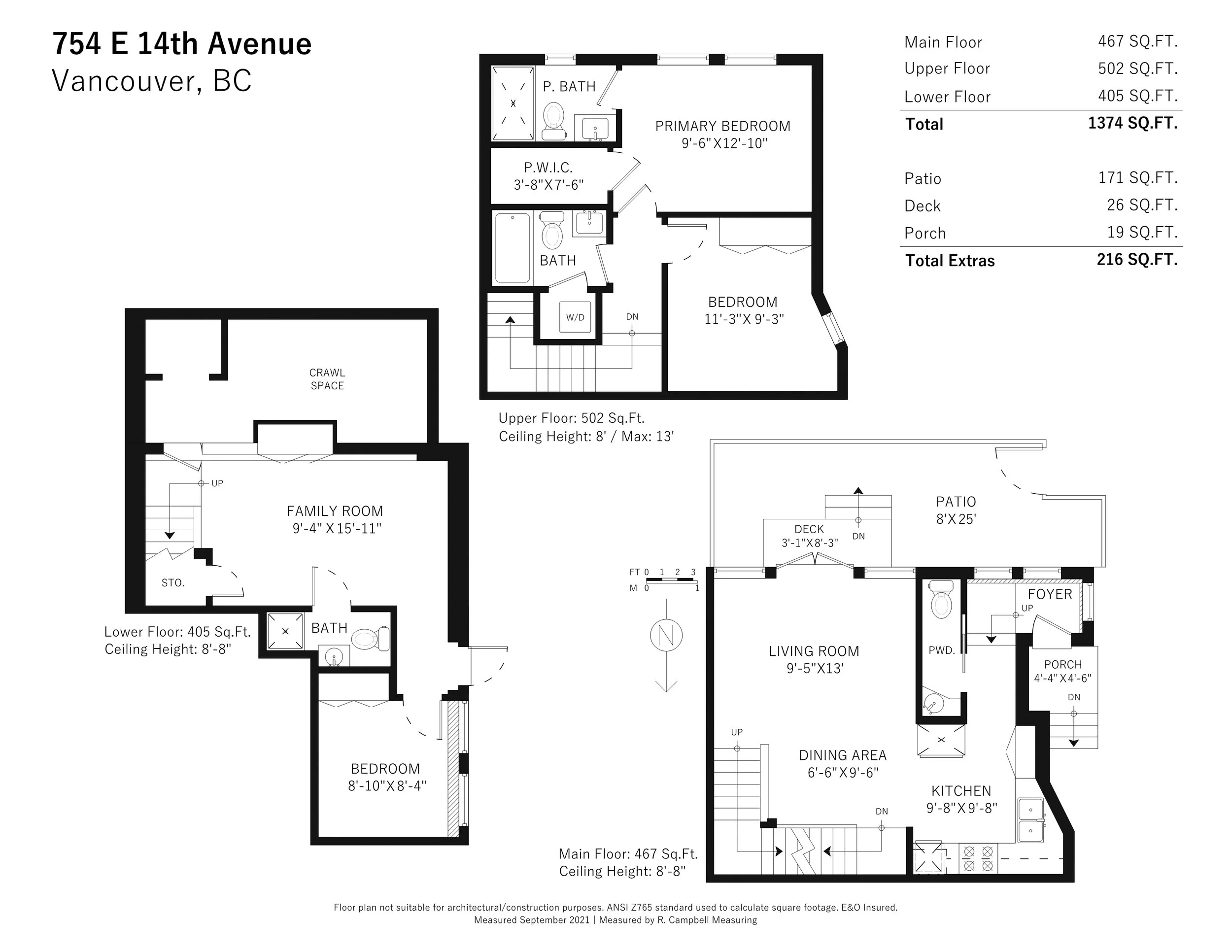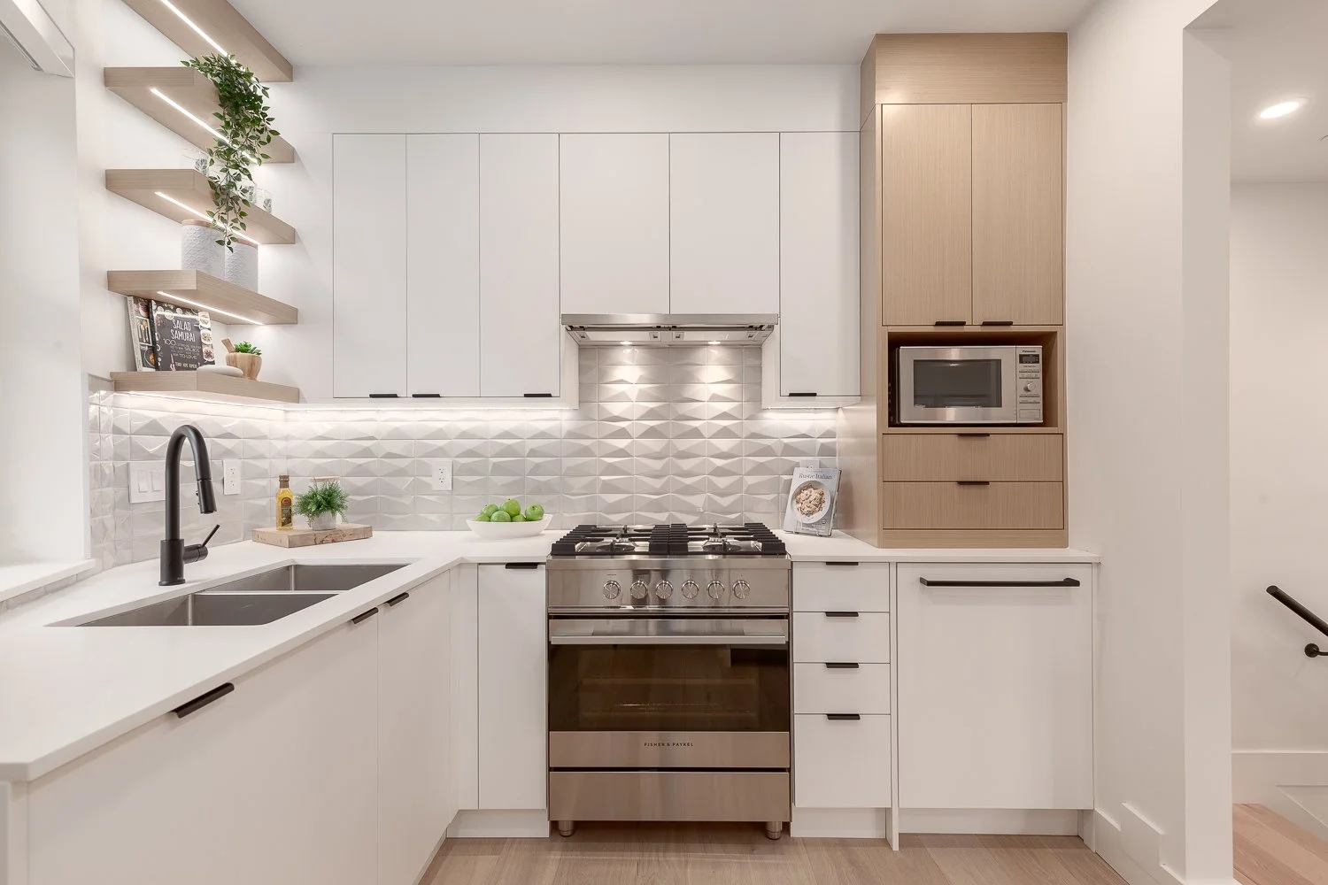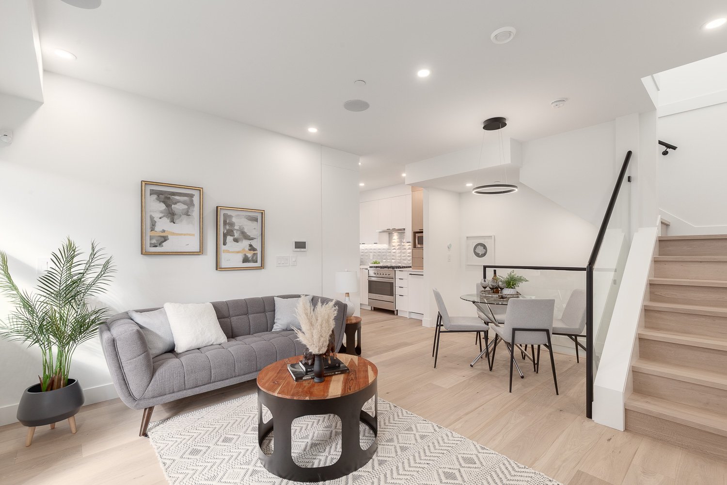 Stunning Craftsman Modern Back Duplex w/ sun-soaked spacious back patio-perfect for entertaining and relaxing. This contemporary 3 bed + 3.5 bath w/ bonus rec/media room in the heart of Mount Pleasant. Open concept layout w/ kitchen, living, & dining area on main level w/ unique custom fixtures. Kitchen feat. quartz counters, custom cabinets, & integrated appliances. Wide plank white oak h/w flooring + HRV + radiant heat throughout. Retreat to bright Master bed with spa-like ensuite & 2nd bed w/ custom closets w/ 4-pc bath conveniently across the hall. Lower level has 1 bed w/ closet and 3-pc bath & BONUS large family room - perfect media space/entertain/home office space. In-suite laundry w/ plenty of built-in storage. Built by Four Corners Homes.